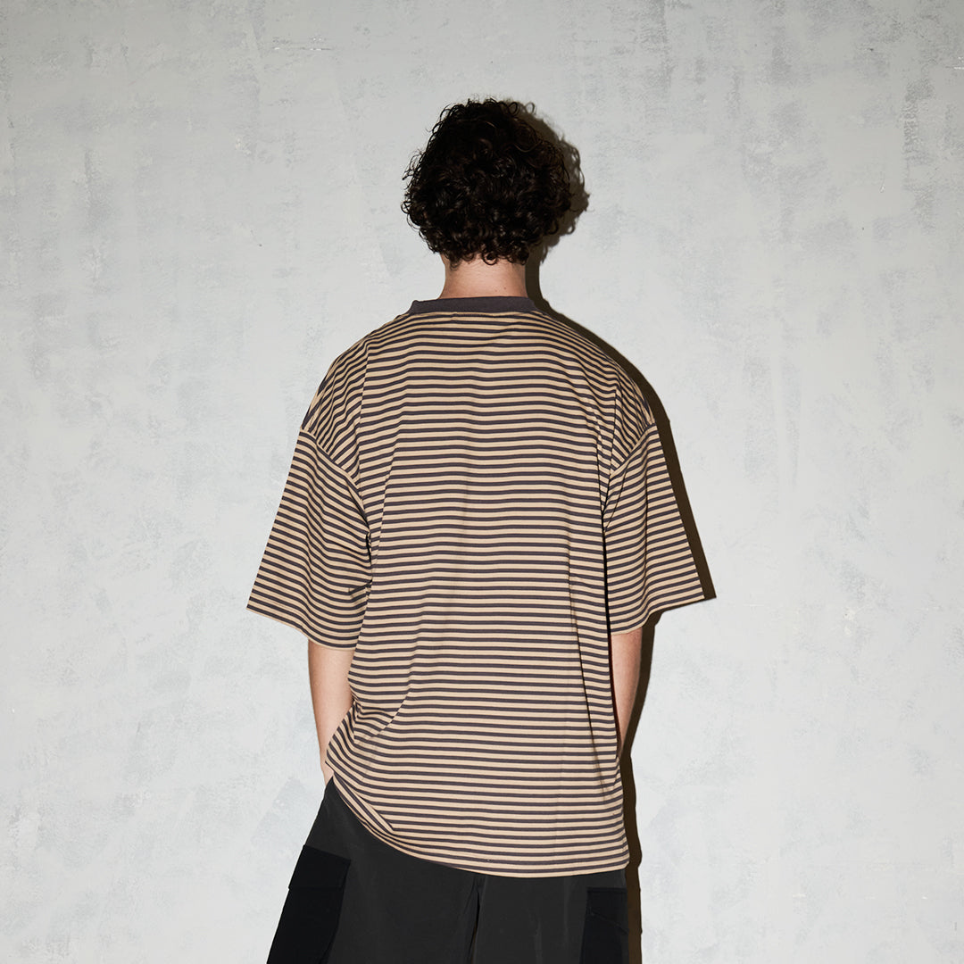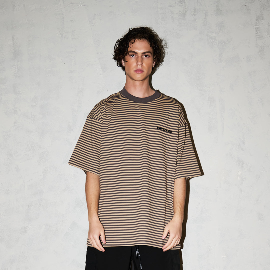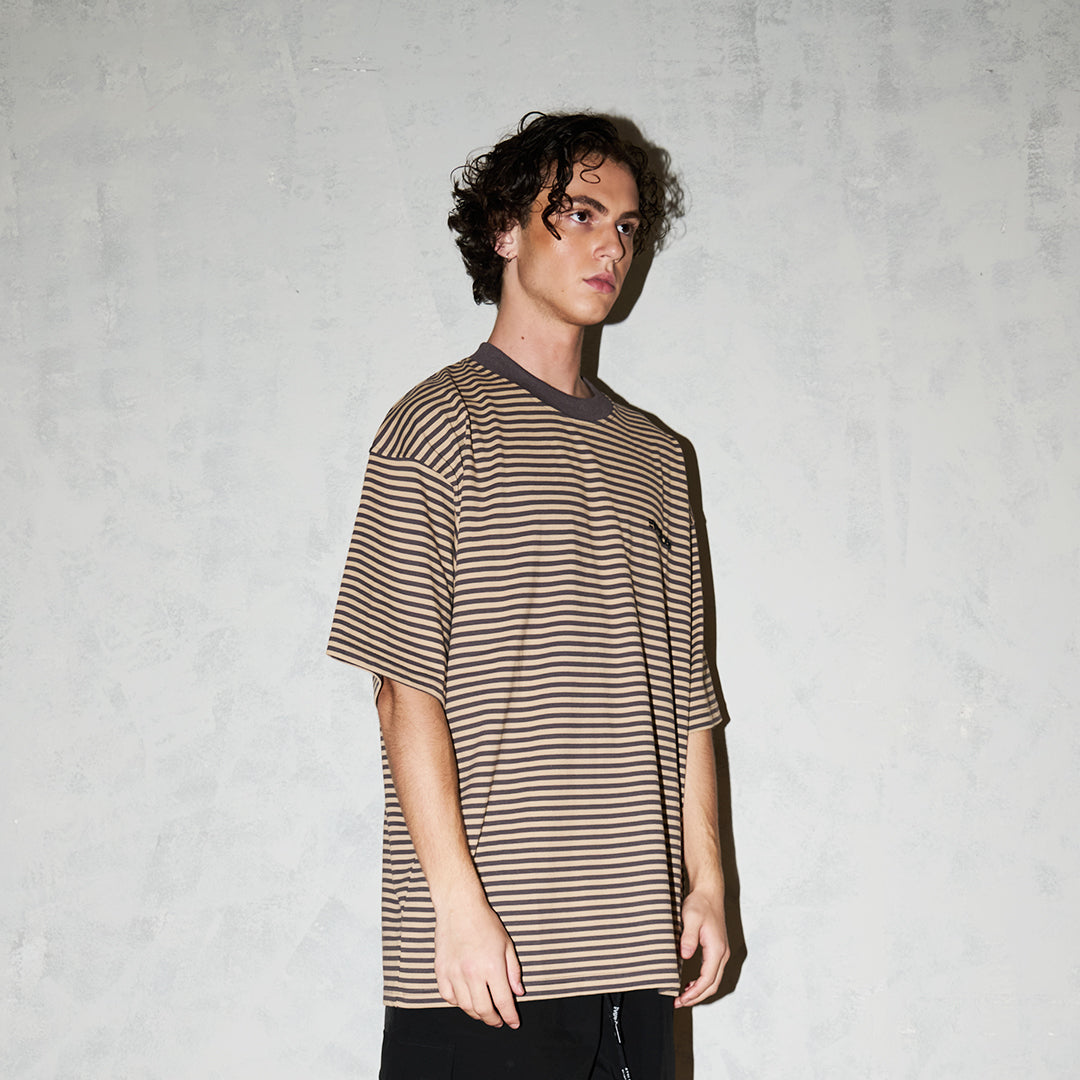 Classic stripes, oversized attitude. The BIO tee is cut wide for comfort and finished with subtle chest embroidery—clean detail that elevates an everyday essential.