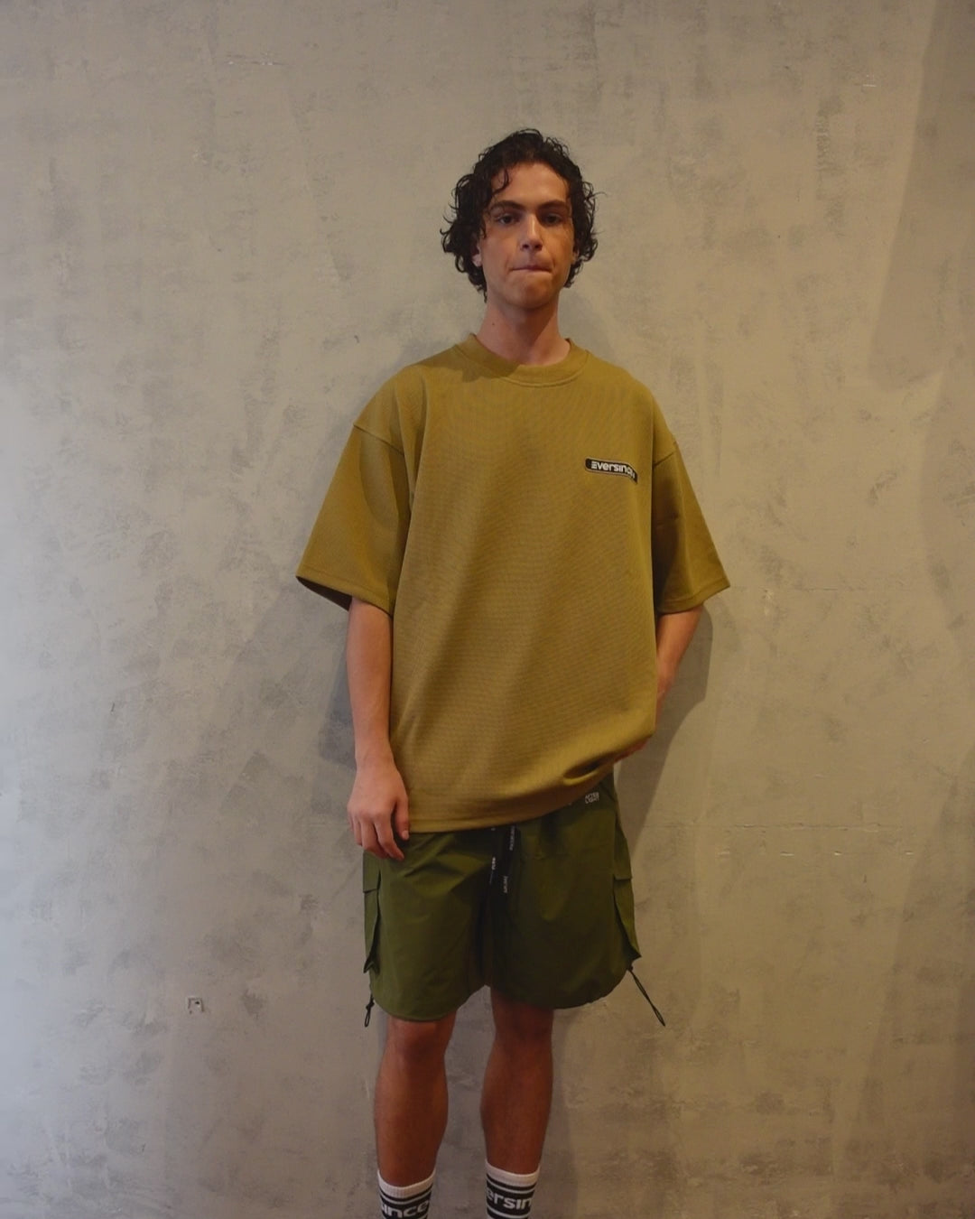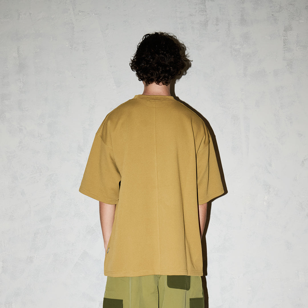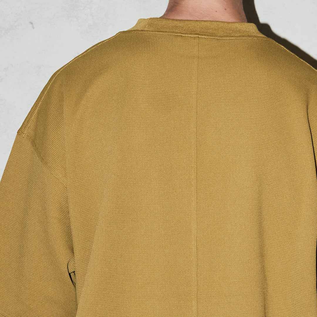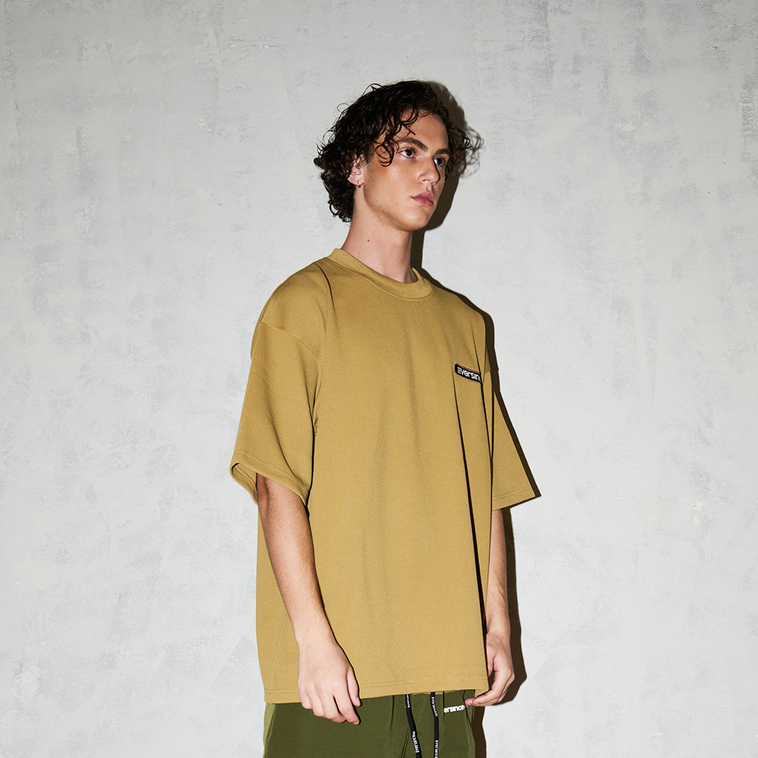 Texture meets detail. This tee is cut from breathable waffle fabric, finished with an embroidered chest patch. A cut-and-sew line runs down the back body, giving a subtle edge to a clean essential.