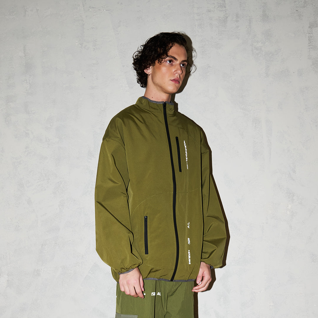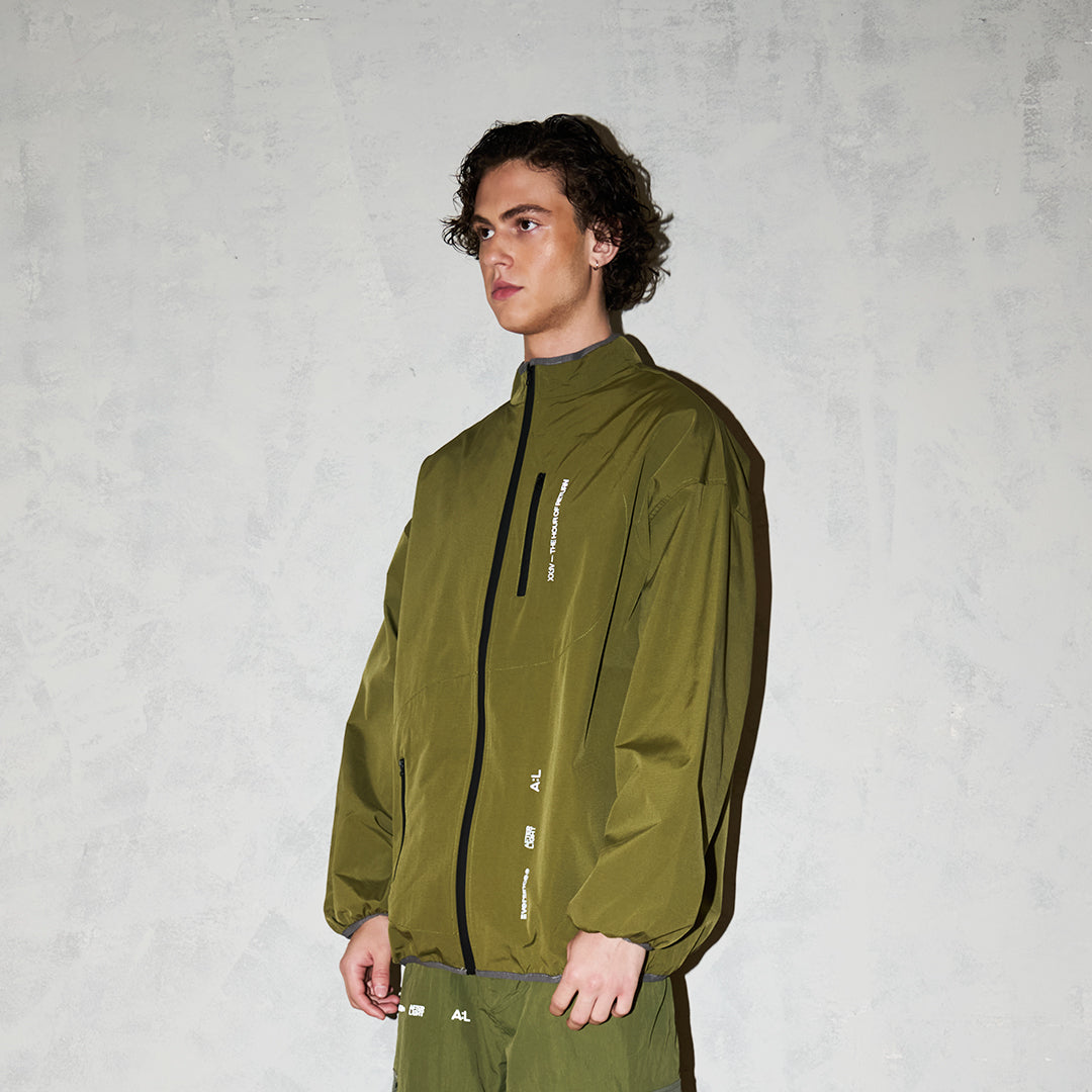Built for movement, made for the elements. The Space jacket is cut from lightweight, water-resistant nylon that keeps you ready for any shift in weather. A zip-up front and elasticated cuffs lock in comfort, while bold back printing pushes the statement further. Minimal on details, heavy on utility.