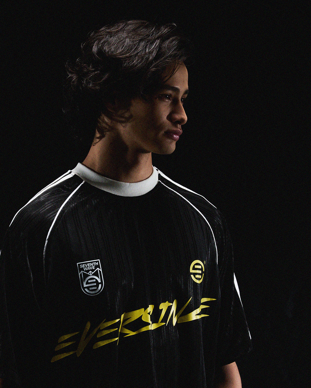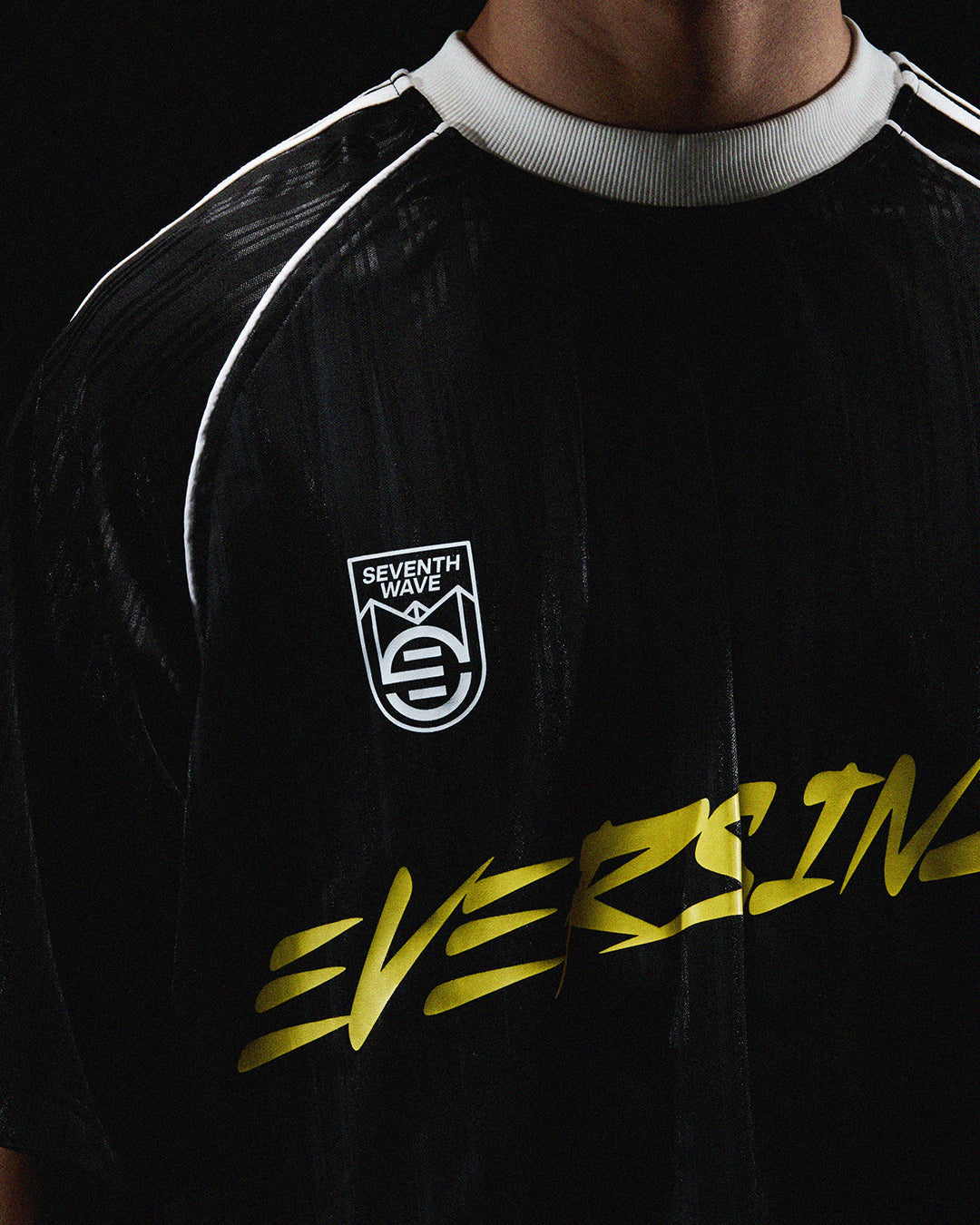 Sport-inspired and effortless, the Seventh Wave Jersey carries the EVERSINCE wordmark on the front, with Seventh Wave lettering and the iconic Number 7 stamped on the back. Finished with four sleeve stripes and a raglan cut, this piece blends movement, identity, and legacy into one defining silhouette.