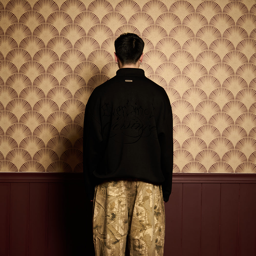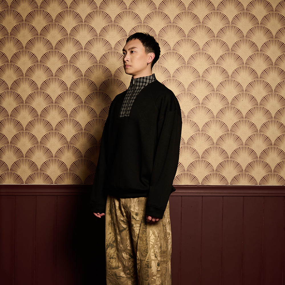 Engineered for clarity and movement, FOCUS is built around precision in form. Designed as a long-length raglan-cut sweatshirt, it features a half-zip closure and a cut-and-sewn construction that mixes fabric panels for depth and function.