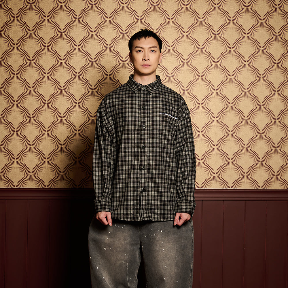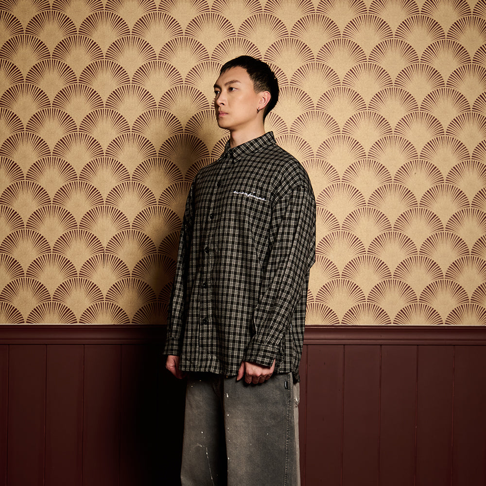 Defined by texture rather than graphics, EDITION focuses on restraint and material. Designed as an oversized long-sleeve shirt, it’s crafted from a textured plaid-like fabric that adds depth while maintaining a clean, composed appearance.