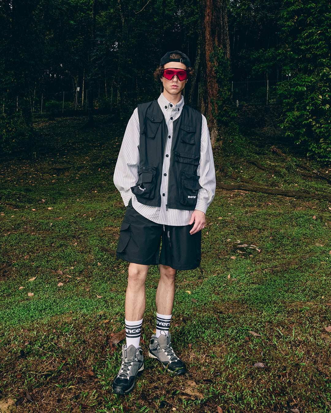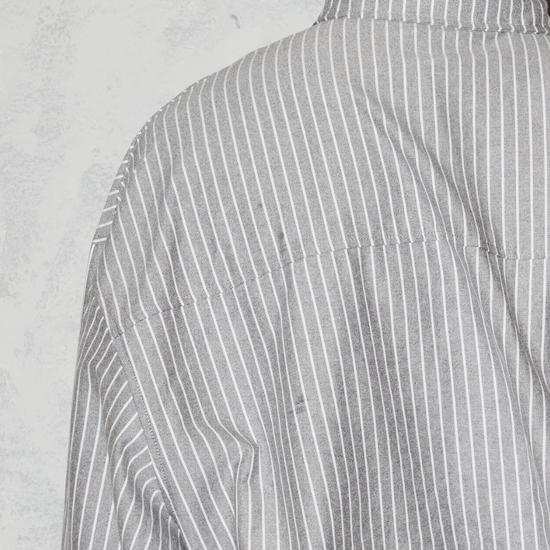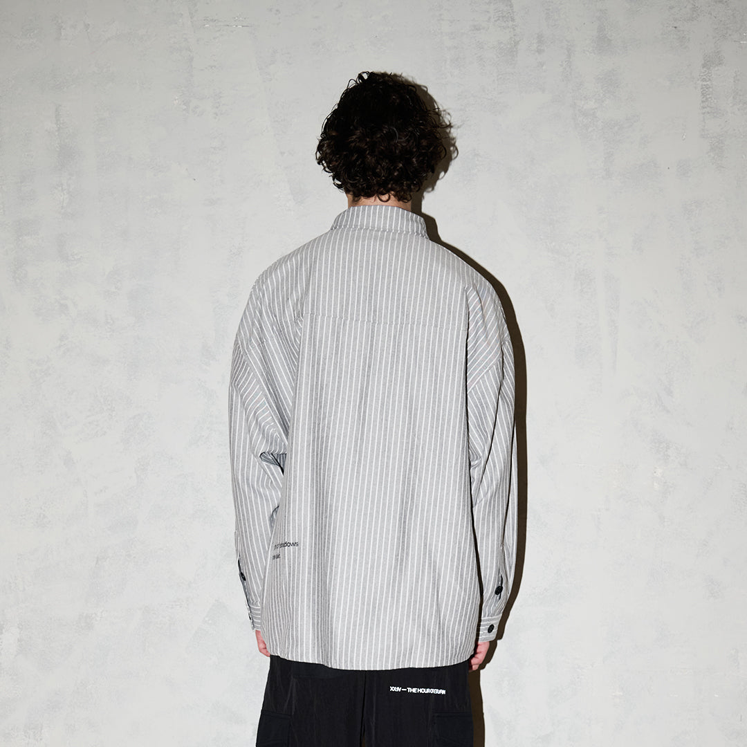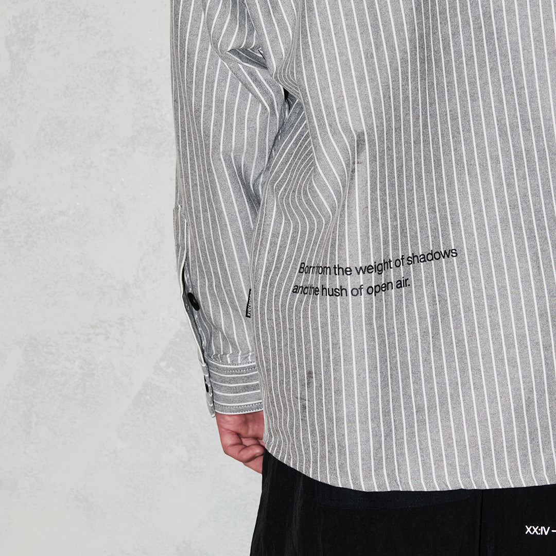 Classic lines, modern function. The SLICK shirt reworks striped fabric into an oversized silhouette, finished with a hidden front pocket sealed by a water-resistant zip. Utility detail disguised in clean design.