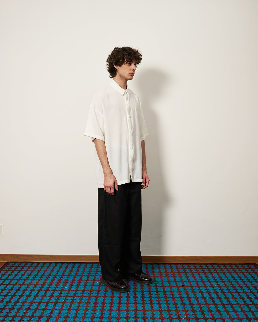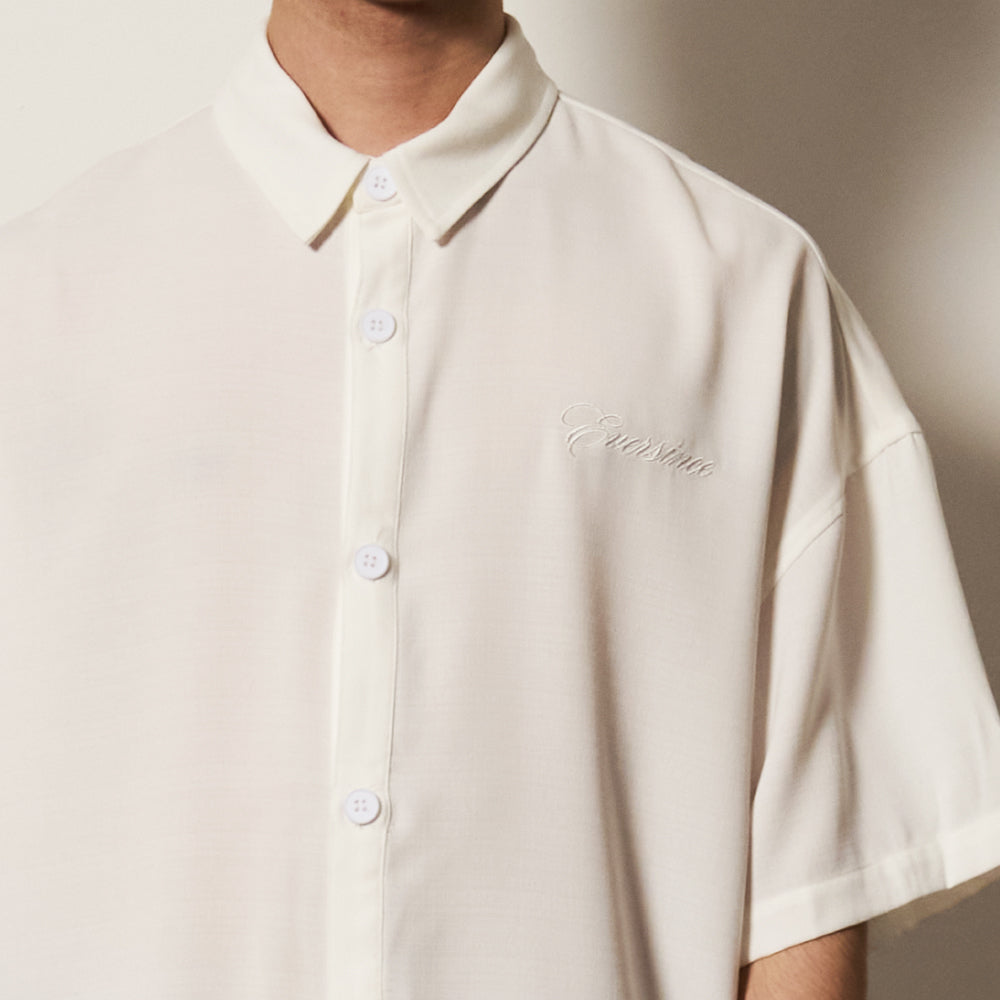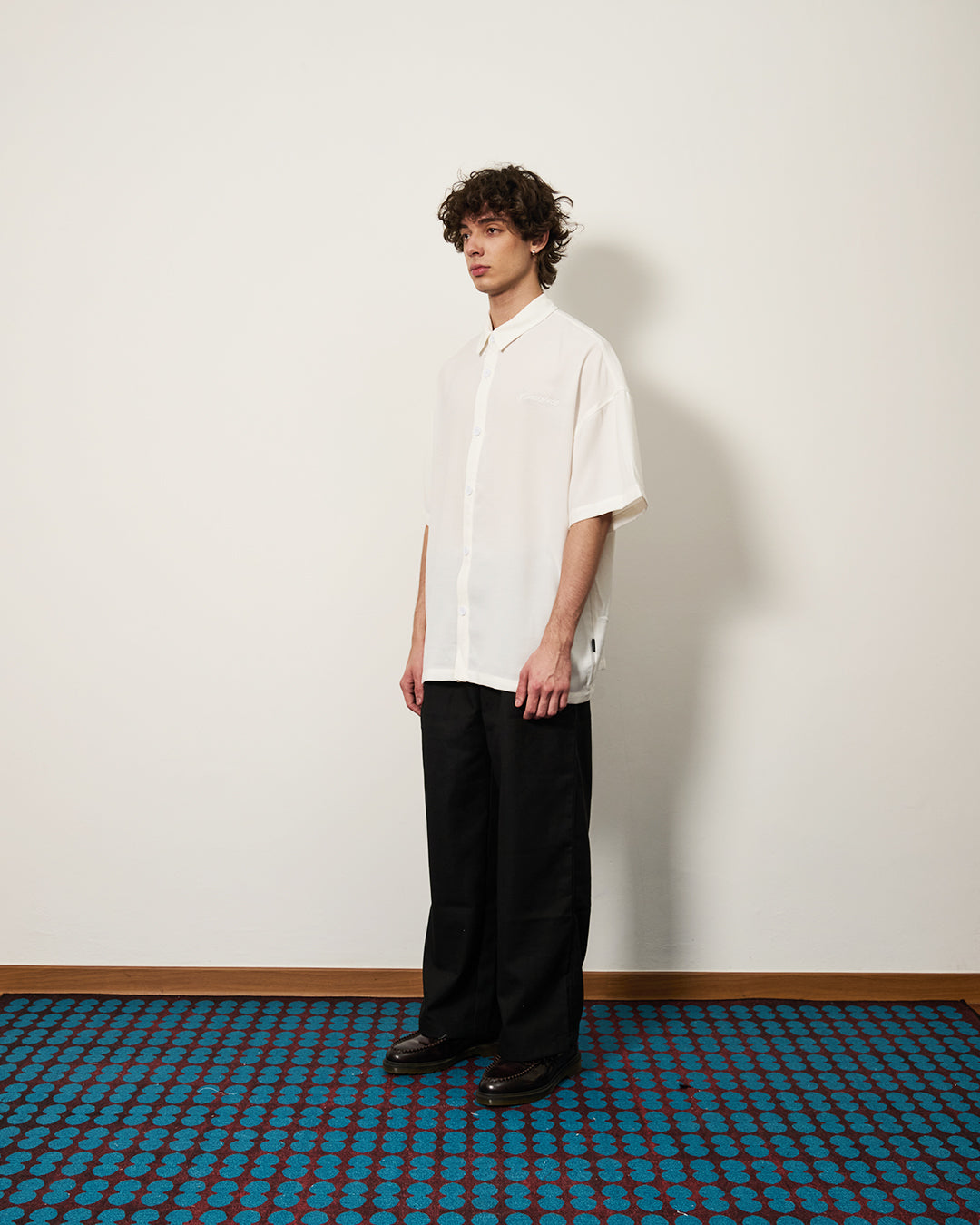 Clean lines, oversized attitude. This short sleeve button-up features an embroidered logo and a relaxed silhouette—crafted from 220g cotton twill for structure with comfort.